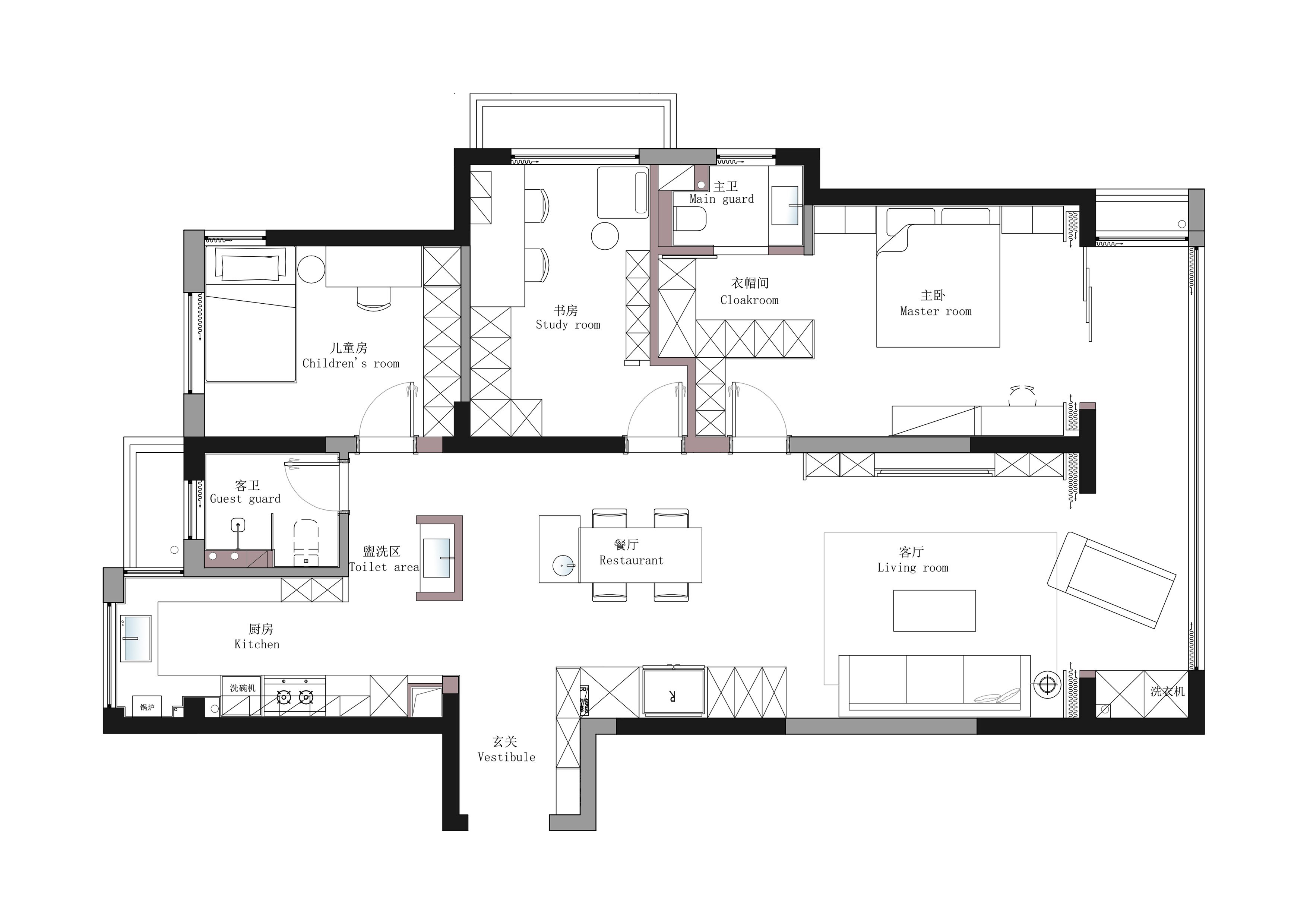 本案屋主是一对从商且前卫的新婚夫妇,喜欢深色系且带点现代意式的品质感的家居。他们保持着良好的生活习惯:研究美食,坚持运动,每天读书,适时party下午茶。不论外面的世界多么复杂,回家后能顷刻收获宁静,回归自在随意的生活状态。