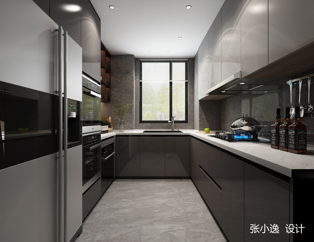 技术层面的考虑和特殊做法:银梨木饰面是竖纹,门护墙板,衣柜,统一材质,厨房的门套和主卫的门套就用木饰面替代了,更整体一些,木饰面同时可以把石材和钢板材质微妙的融在一起而不会显得生硬,钢板的弧形门套在入户鞋帽间,之所以做弧形是弱化钢板的生硬的感觉。